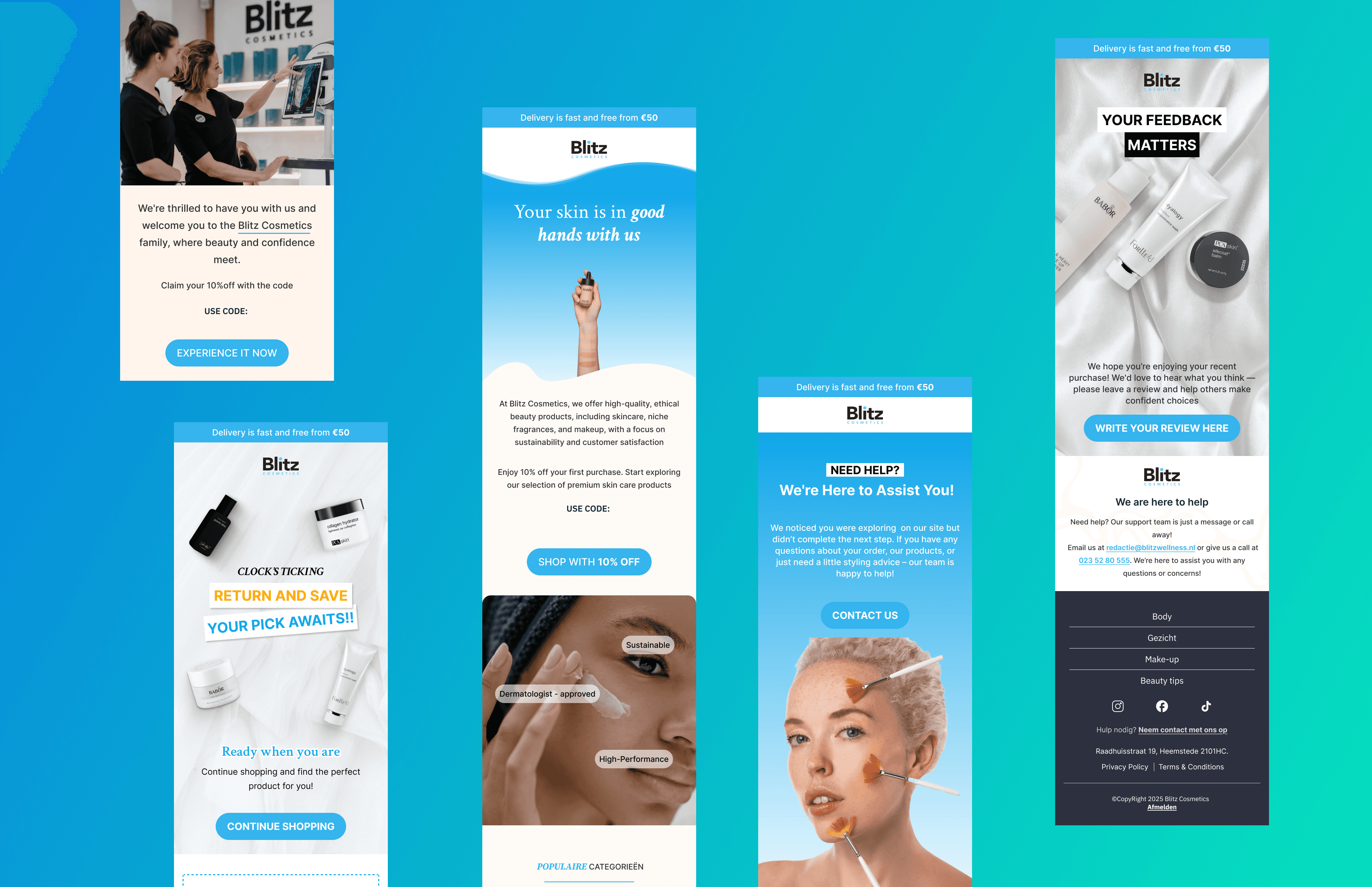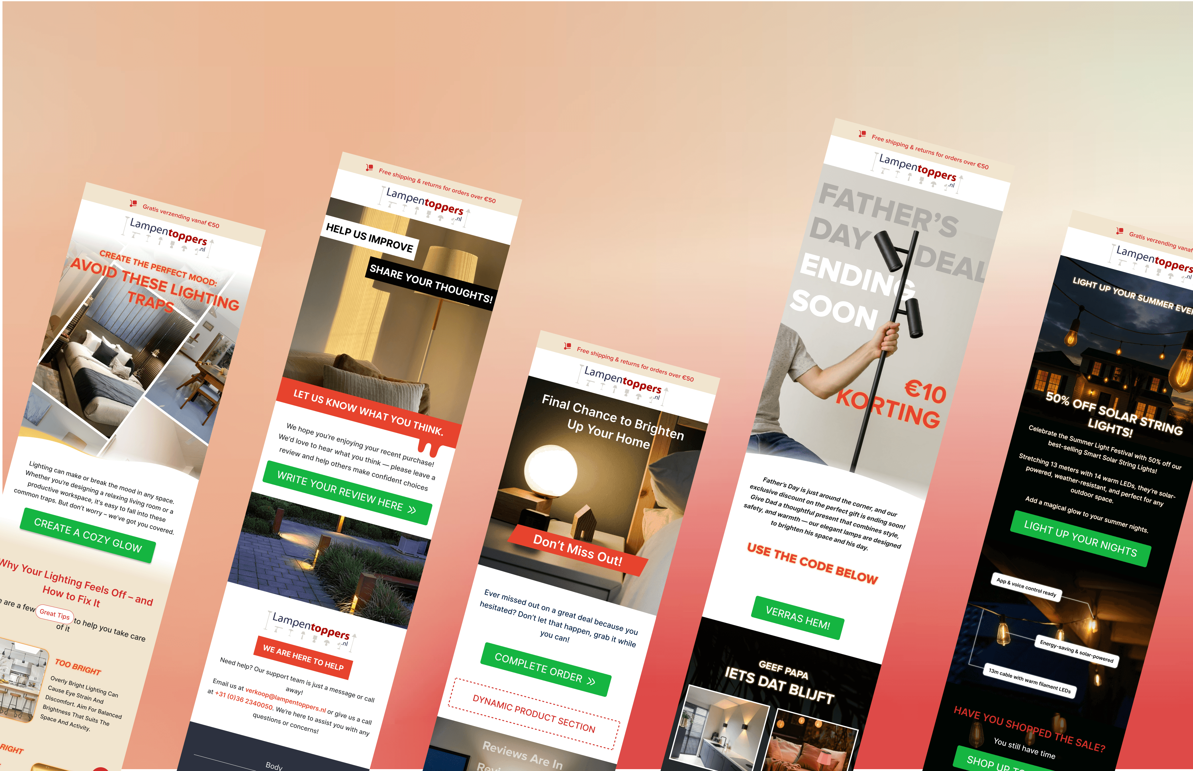 Delivered flexible templates for multiple user journeys (welcome, promo, updates).